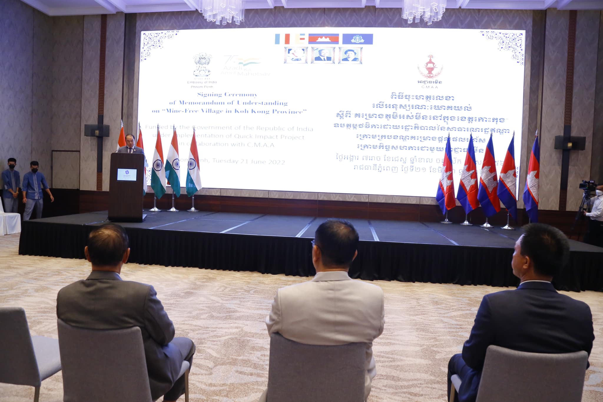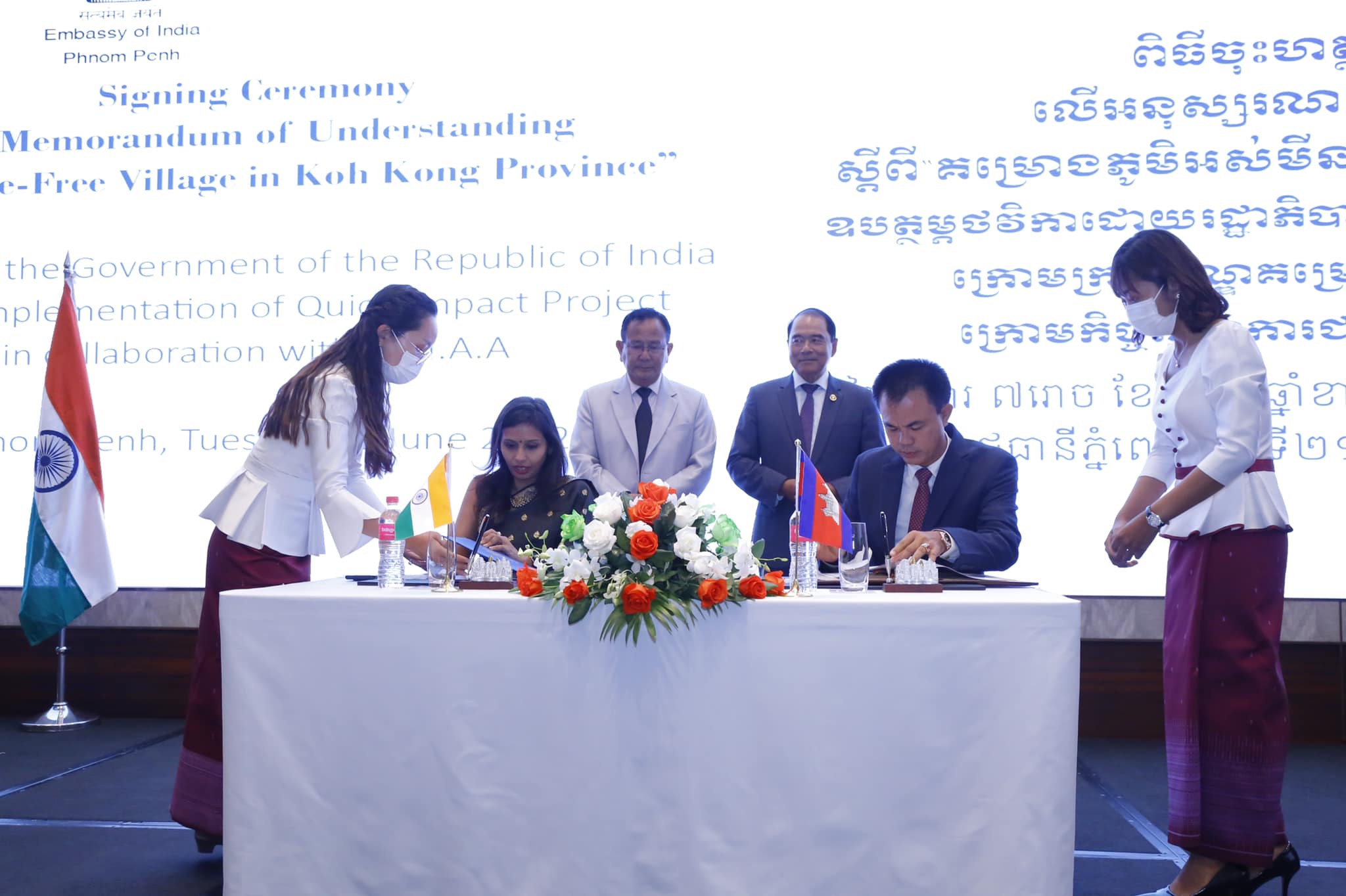 ពិធីចុះហត្ថលេខាលើអនុស្សារណៈយោគយល់គ្នា ស្តីពីគម្រោងភូមិអស់មីននៅក្នុងខេត្តកោះកុង ឧបត្ថម្ភដោយរដ្ឋាភិបាលនៃសាធារណរដ្ឋឥណ្ឌា