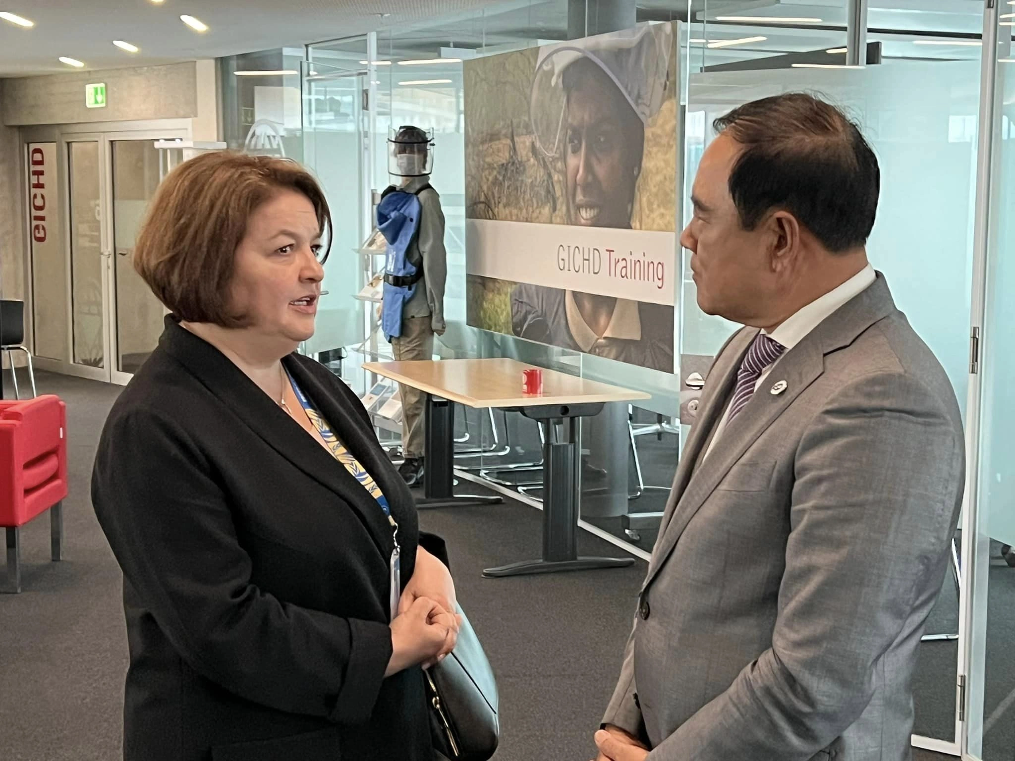 (ប្រទេសស្វីស) ថ្ងៃទី០៤ ខែមីនា ឆ្នាំ២០២៤ ឯកឧត្តមបណ្ឌិត លី ធុជ ប្រធានអនុសញ្ញាអូតាវ៉ាឆ្នាំ២០២៤ បានដឹកនាំគណៈកម្មការអនុលោមភាពកិច្ចសហប្រតិបត្តិការនៃអនុសញ្ញាអូតាវ៉ា ជួបប្រជុំពិភាក្សាជាមួយ លោកជំទាវ Yevheniia FILIPENKO តំណាងស្ថានបេសកកម្មអចិន្ត្រៃយ៍នៃប្រទេសអ៊ុយក្រែន ប្រចាំអង្គការសហប្រជាជាតិ និងអង្គការអន្តរជាតិនានា នៅទីក្រុងហ្សឺណែវ ដើម្បីលើកកម្ពស់វិធីសាស្រ្តសហប្រតិបត្តិការក្នុងការដោះស្រាយការចោទប្រកាន់ ដោយសង្កត់ធ្ងន់លើសារៈសំខាន់នៃកិច្ចសន្ទនាដែលកំពុងបន្ត និងពង្រឹងការប្តេជ្ញាចិត្តរបស់អ៊ុយក្រែនចំពោះគោលការណ៍នៃអនុសញ្ញាហាមការប្រើប្រាស់មីនប្រឆាំងមនុស្ស។