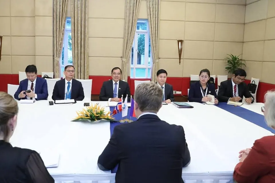 (សៀមរាប) ថ្ងៃទី២៥ ខែវិច្ឆិកា ឆ្នាំ២០២៤ ឯកឧត្តមបណ្ឌិត លី ធុជ ទទួលជំនួបទ្វេភាគីជាមួយ ឯកឧត្តម Andreas Motzfeldt Kravik អនុរដ្ឋមន្រ្តីការបរទេសនៃប្រទេសន័រវេស ដែលជំនួបទ្វេភាគីនេះ មានការចូលរួមពី ឯកឧត្តម Astrid Helle ឯកអគ្គរាជទូតន័រវេសប្រចាំនៅប្រទេសថៃ និងកម្ពុជា។