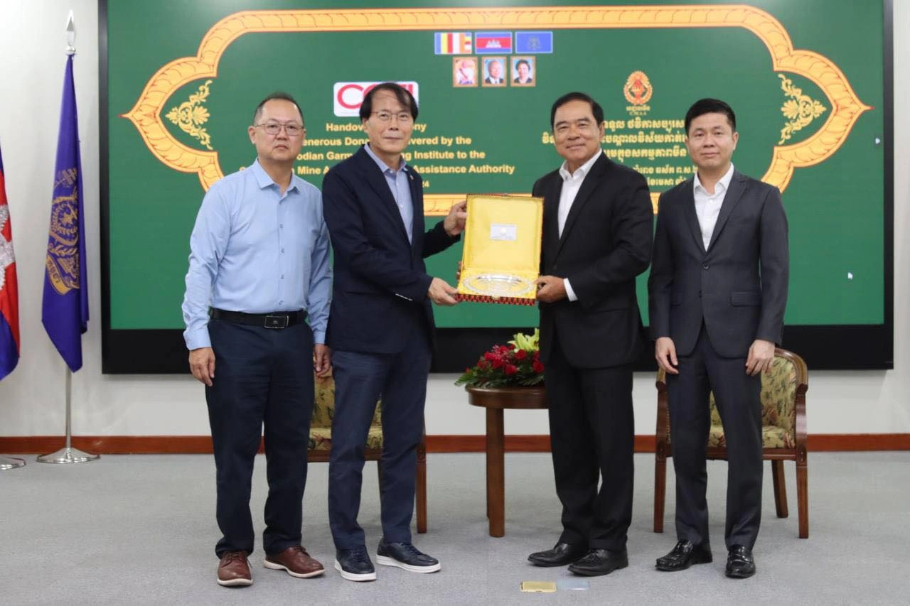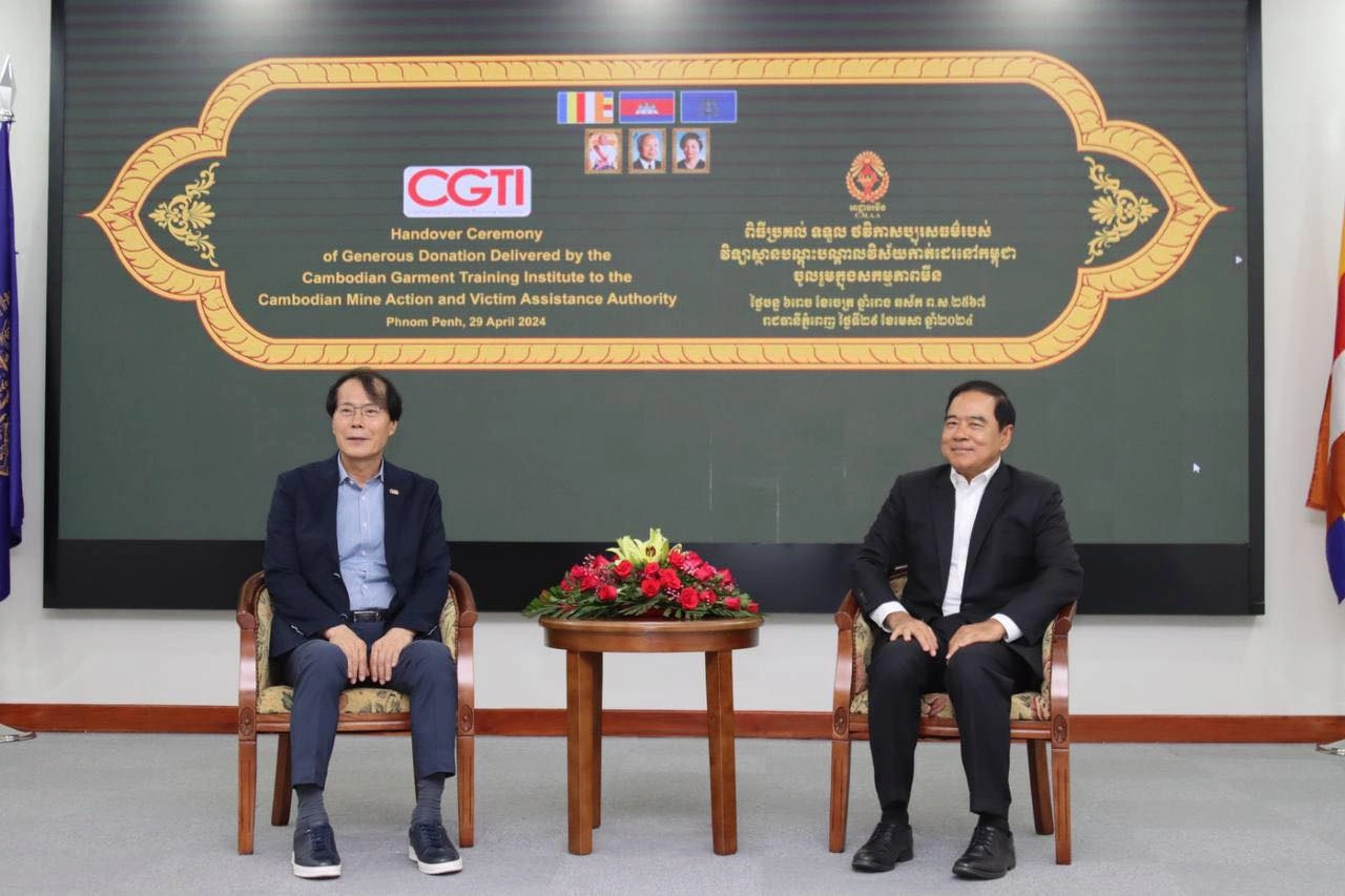 អាជ្ញាធរមីន : ព្រឹកថ្ងៃទី២៩ ខែមេសា ឆ្នាំ២០២៤ ឯកឧត្តមបណ្ឌិត លី ធុជ ទេសរដ្ឋមន្រ្តី អនុប្រធានទី១ អាជ្ញាធរមីន បានអញ្ជើញចូលរួមជាអធិបតីក្នុងពិធីប្រគល់-ទទួលថវិកាសប្បុរសធម៌ ពីវិទ្យាស្ថានបណ្តុះបណ្តាលវិស័យកាត់ដេរនៅកម្ពុជា (CGTI) ដែលផ្តល់ជូនដោយលោក Robert Hwang អនុប្រធាន TAFTAC និងលោក Andrew Tey នាយកវិទ្យាស្ថានបណ្តុះបណ្តាលវិស័យកាត់ដេរនៅកម្ពុជា។