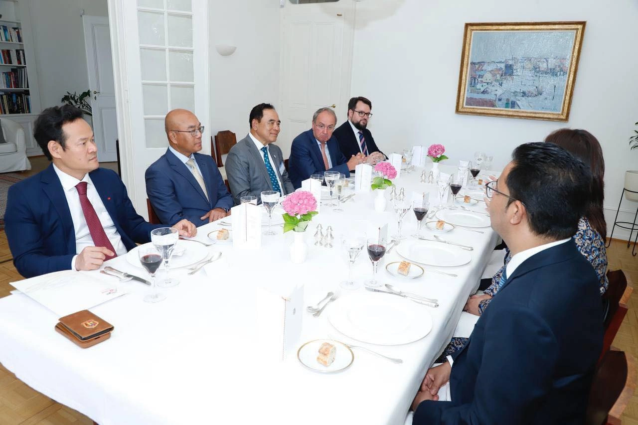 ក្នុងឱកាសនោះ ឯកឧត្តមបណ្ឌិត លី ធុជ បានថ្លែងអំណរគុណជូនចំពោះ ឯកឧត្តម Marc PECSTEEN de BUYTSWERVE ឯកអគ្គរាជទូត និងតំណាងស្ថានបេសកកម្មអចិន្ត្រៃយ៍ប្រទេសបែលហ្សិកប្រចាំទីក្រុងហ្សឺណែវ ដែលបានរៀបចំនូវកិច្ចជំនួបតុមូលនេះ ដើម្បីភ្ជាប់ទំនាក់ទំនងជាមួយឯកអគ្គរដ្ឋទូតអាស៊ានមកពីប្រទេសវៀតណាម ឡាវ និងសិង្ហបុរី ផងដែរ។
