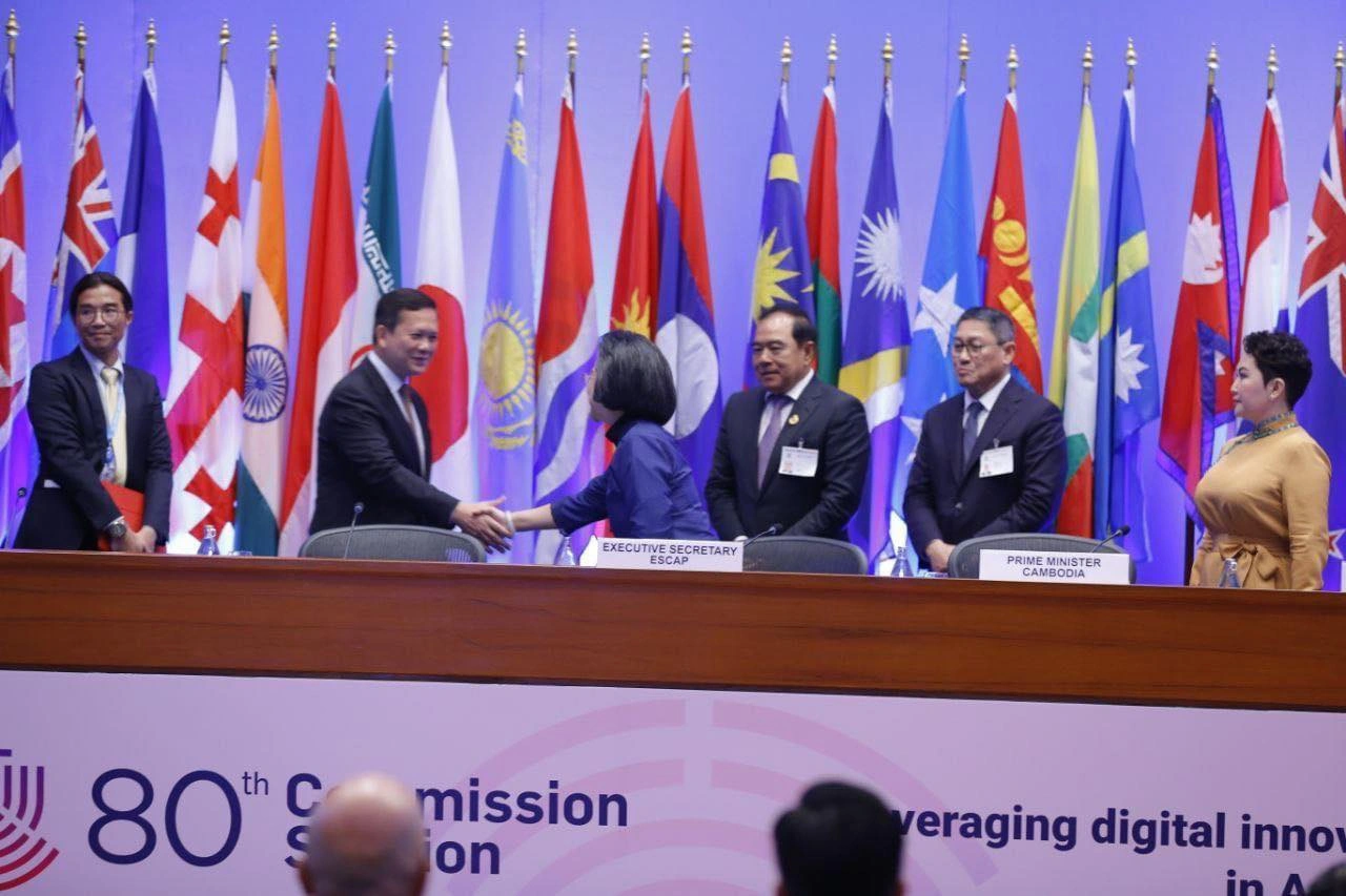 សម្តេច​មហា​បវរ​ធិបតី​ ហ៊ុន​ ម៉ាណែត​ នាយករដ្ឋមន្ត្រី​នៃ​ព្រះរាជាណាចក្រ​កម្ពុជា​ ​ថ្លែង​សុន្ទរកថា​ពិសេស​នៅ​ក្នុង​ពិធី​បេីក​សន្និបាត​ប្រចាំ​ឆ្នាំ​លេីក​ទី​៨០​ នៃ​គណ:កម្មការ​សេដ្ឋកិច្ច​ និង​សង្គមកិច្ច​សម្រាប់​តំបន់​អាស៊ី​ និង​ប៉ាស៊ីហ្វិក​ នៃ​អង្គការសហប្រជាជាតិ​ (UN-ESCAP)