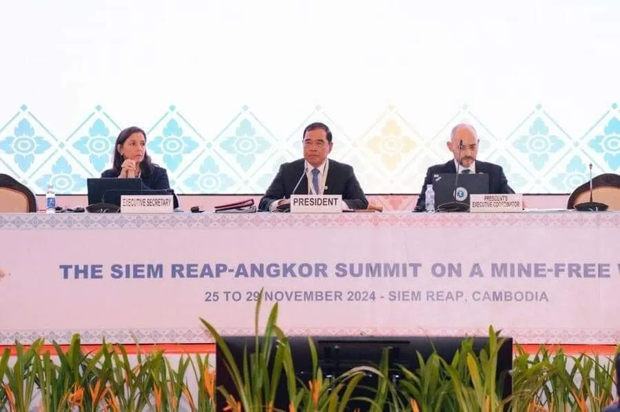 ឯកឧត្តម ទេសរដ្ឋមន្ត្រី លី ធុជ ប្រធានអនុញ្ញាអូតាវ៉ា ឆ្នាំ២០២៤ អញ្ជើញដឹកនាំកិច្ចប្រជុំពេញអង្គនៃកិច្ចប្រជុំកំពូលសៀមរាប-អង្គរ ស្តីពីពិភពលោកមួយដែលគ្មានមីន នៅសណ្ឋាគារសុខាសៀមរាប ខេត្តសៀមរាប នាព្រឹកថ្ងៃទី២៥ ខែវិច្ឆិកា ឆ្នាំ២០២៤។