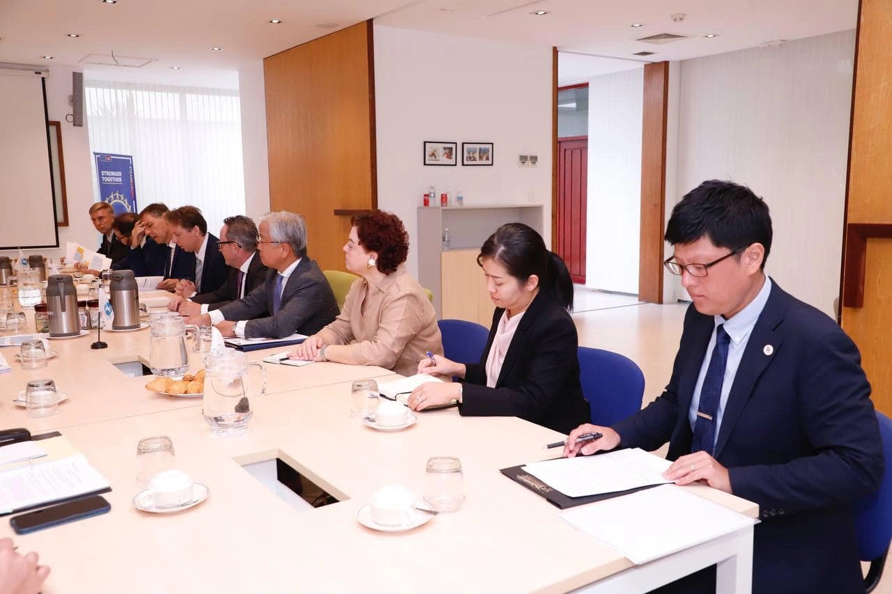(ភ្នំពេញ)៖ ថ្ងៃទី១៦ ខែតុលា ឆ្នាំ២០២៣ នៅនិវេសនដ្ឋានសហភាពអ៊ឺរ៉ុបប្រចាំកម្ពុជា ក្នុងនាមជាប្រធានជ្រើសតាំងនៃកិច្ចប្រជុំត្រួតពិនិត្យឡើងវិញលើកទី៥ នៃអនុសញ្ញាអូតាវ៉ាសម្រាប់ឆ្នាំ២០២៤ ឯកឧត្តម ទេសរដ្ឋមន្រ្តី លី ធុជ អនុប្រធានទី១ អាជ្ញាធរមីន បានចូលរួមកិច្ចប្រជុំត្រៀមយុទ្ធសាស្រ្តសម្រាប់ជំរុញសកលភាវូបនីយកម្មសកម្មភាពមីន។