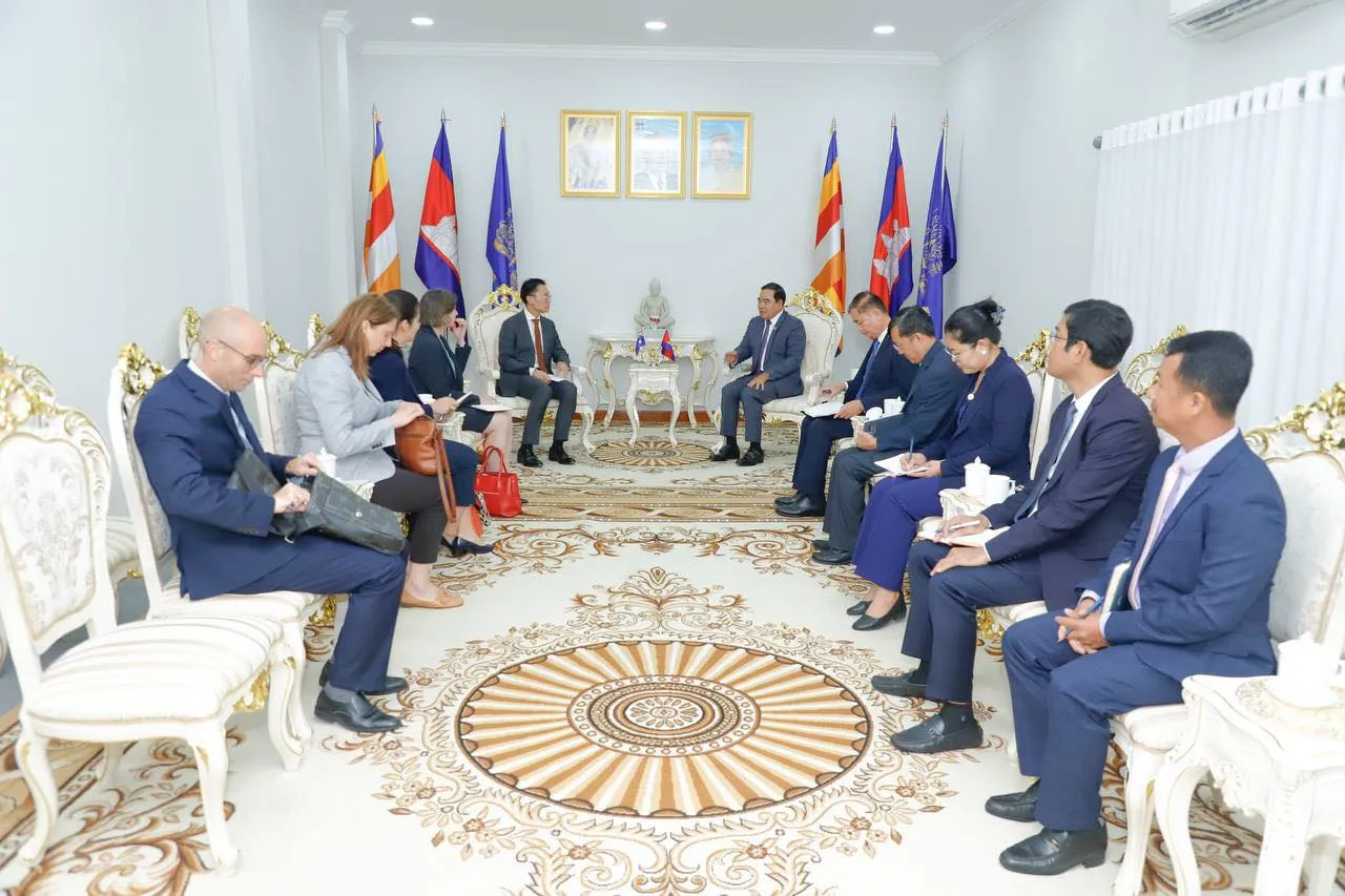 អាជ្ញាធរមីន : រសៀលថ្ងៃទី២៣ ខែកញ្ញា ឆ្នាំ២០២៤ ឯកឧត្តមបណ្ឌិត លី ធុជ ទេសរដ្ឋមន្ត្រី អនុប្រធានទី១ អាជ្ញាធរមីន បានទទួលជួបពិភាក្សាការងារជាមួយ ឯកឧត្តម Derek Yip ឯកអគ្គរដ្ឋទូតវិសាមញ្ញ និងពេញសមត្ថភាព នៃប្រទេសអូស្រ្តាលី ប្រចាំនៅកម្ពុជា និងសហការី ដើម្បីពង្រឹងនូវភាពជាដៃគូ និងកិច្ចសហប្រតិបត្តិការសកម្មភាពមីននៅកម្ពុជា។