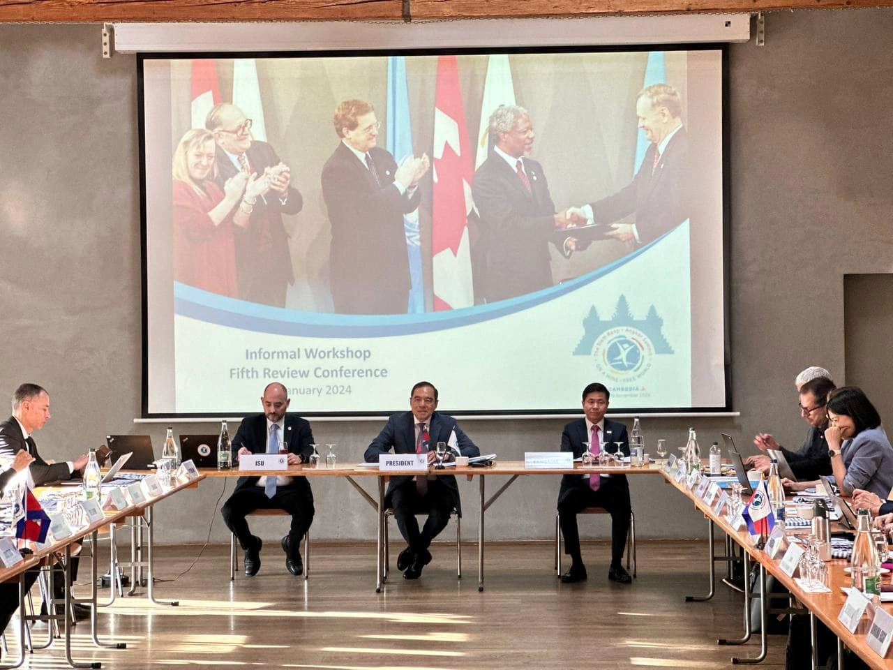 (ស្វីស) ថ្ងៃទី២៦ ខែមករា ឆ្នាំ២០២៤ នៅទីក្រុងហ្សឺណែវ ប្រទេសស្វីស ឯកឧត្តមទេសរដ្ឋមន្រ្តី លី ធុជ អនុប្រធានទី១ អាជ្ញាធរមីន និងជាប្រធានកិច្ចប្រជុំត្រួតពិនិត្យឡើងវិញលើកទី៥ នៃអនុសញ្ញាអូតាវ៉ាឆ្នាំ២០២៤ បានដឹកនាំកិច្ចប្រជុំជាមួយភាគីពាក់ព័ន្ធ ដើម្បីត្រៀមរៀបចំកិច្ចប្រជុំត្រួតពិនិត្យឡើងវិញលើកទី៥ នៃអនុសញ្ញាអូតាវ៉ា នៅខេត្តសៀមរាប ឆ្នាំ២០២៤ និងត្រៀមរៀបចំសេចក្តីថ្លែងការណ៍ និងផែនការសកម្មភាពសៀមរាប-អង្គររយៈពេល ៥ ឆ្នាំ។