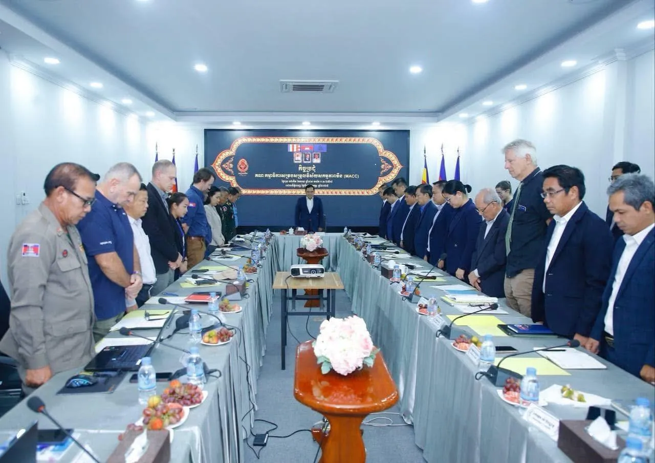 ភ្នំពេញ : រសៀលថ្ងៃទី១២ ខែកុម្ភៈ ឆ្នាំ២០២៥ នៅទីស្នាក់ការអាជ្ញាធរមីន ឯកឧត្តមទេសរដ្ឋមន្ត្រី លី ធុជ អនុប្រធានទី១ អាជ្ញាធរមីន អញ្ចើញដឹកនាំកិច្ចប្រជុំគណៈកម្មាធិការសម្របសម្រួលសកម្មភាពកម្ចាត់មីន (MACC) ដែលកិច្ចប្រជុំនេះ មានការចូលរួមពីប្រតិបត្តិករបោសសម្អាតមីនរួមមាន បញ្ជាការដ្ឋានកងទ័ពជើងគោក មជ្ឈមណ្ឌលជាតិរក្សាសន្តិភាព អង្គភាពស៊ីម៉ាក់ អង្គការ HALO Trust, MAG, NPA, CSHD, APOPO និងមជ្ឈមណ្ឌលតំបន់អាស៊ានសម្រាប់សកម្មភាពមីន (ARMAC)។