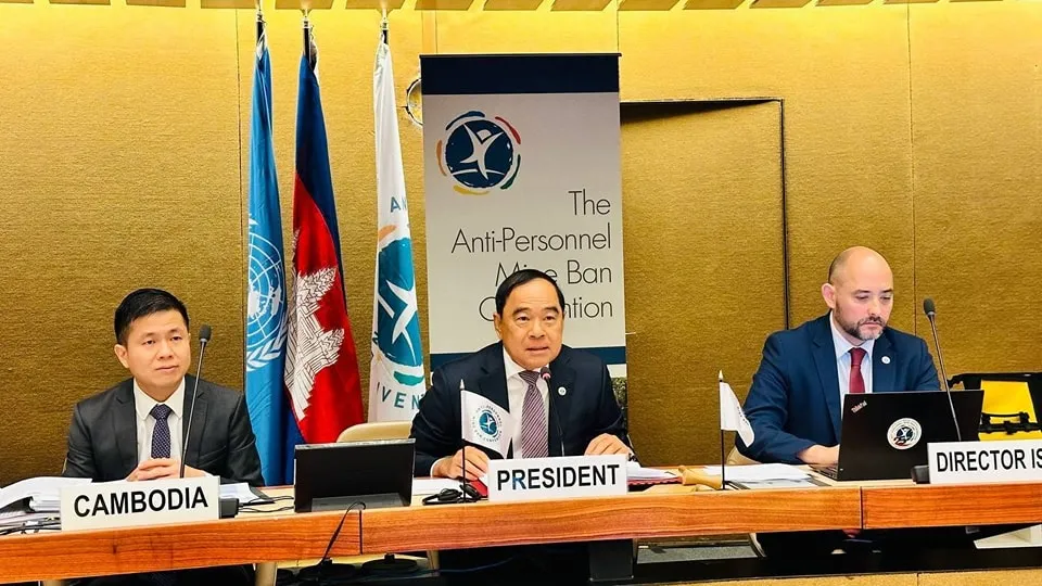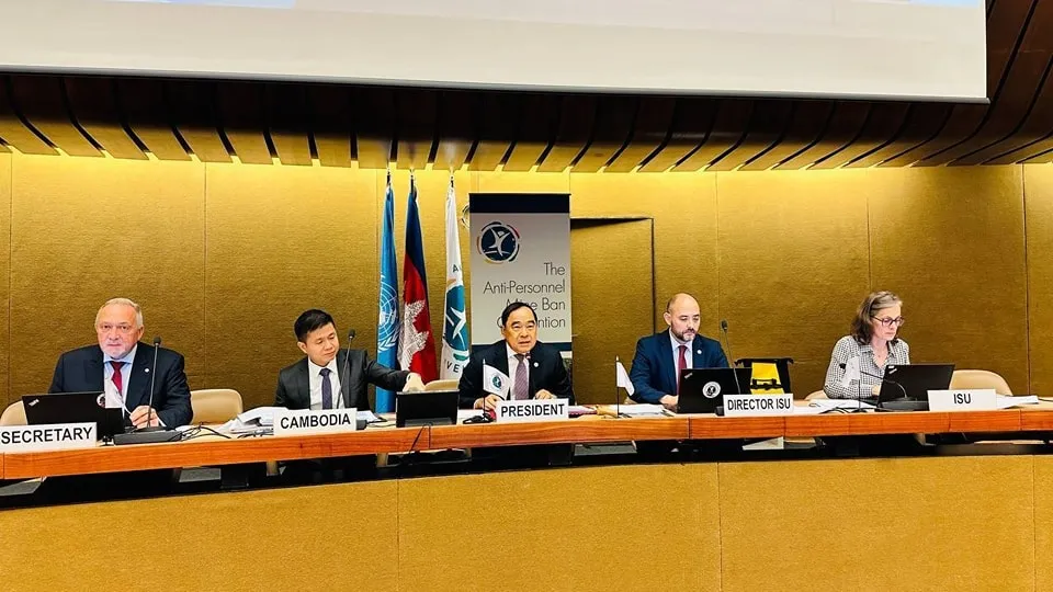 ទីស្នាក់ការអង្គការសហប្រជាជាតិ ទីក្រុងហ្សឺណែវ ប្រទេសស្វីស ថ្ងៃទី១៨ ខែកញ្ញា ឆ្នាំ២០២៤ ឯកឧត្តមបណ្ឌិត លី ធុជ ទេសរដ្ឋមន្ត្រី អនុប្រធានទី១ អាជ្ញាធរមីន និងជាប្រធានអនុសញ្ញាអូតាវ៉ា បានដឹកនាំកិច្ចប្រជុំត្រៀមលើកទី២ សម្រាប់កិច្ចប្រជុំកំពូលសៀមរាប-អង្គរ ស្តីពីពិភពលោកមួយដែលគ្មានមីន។