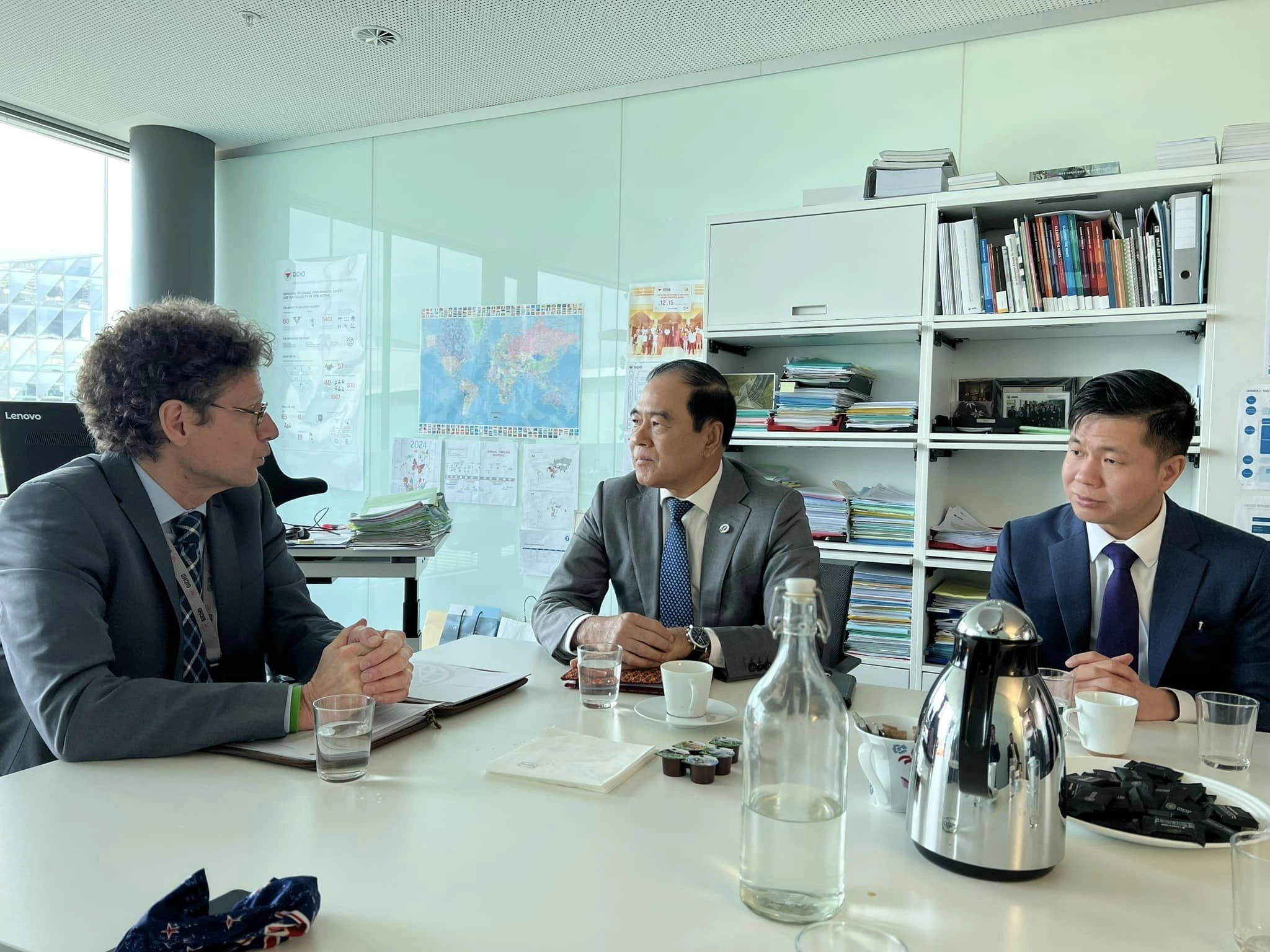 ឆ្លៀតក្នុងឱកាសនោះ ក្នុងនាមរាជរដ្ឋាភិបាលកម្ពុជា ឯកឧត្តមអនុប្រធានទី១អាជ្ញាធរមីន បានកោតសរសើរចំពោះលោកនាយកនៃមជ្ឈមណ្ឌល GICHD Stefano Toscano និងសហការី ដែលបានរួមចំណែកដ៏ថ្លៃថ្លាក្នុងសកម្មភាពមីនសកល និងជួយសង្រ្គោះអាយុជីវិតបានយ៉ាងច្រើននៅតាមបណ្តាប្រទេសដែលរងផលប៉ះពាល់ដោយសារមីន និងសំណល់ជាតិផ្ទុះពីសង្រ្គាម ដោយគ្មានការរើសអើង។