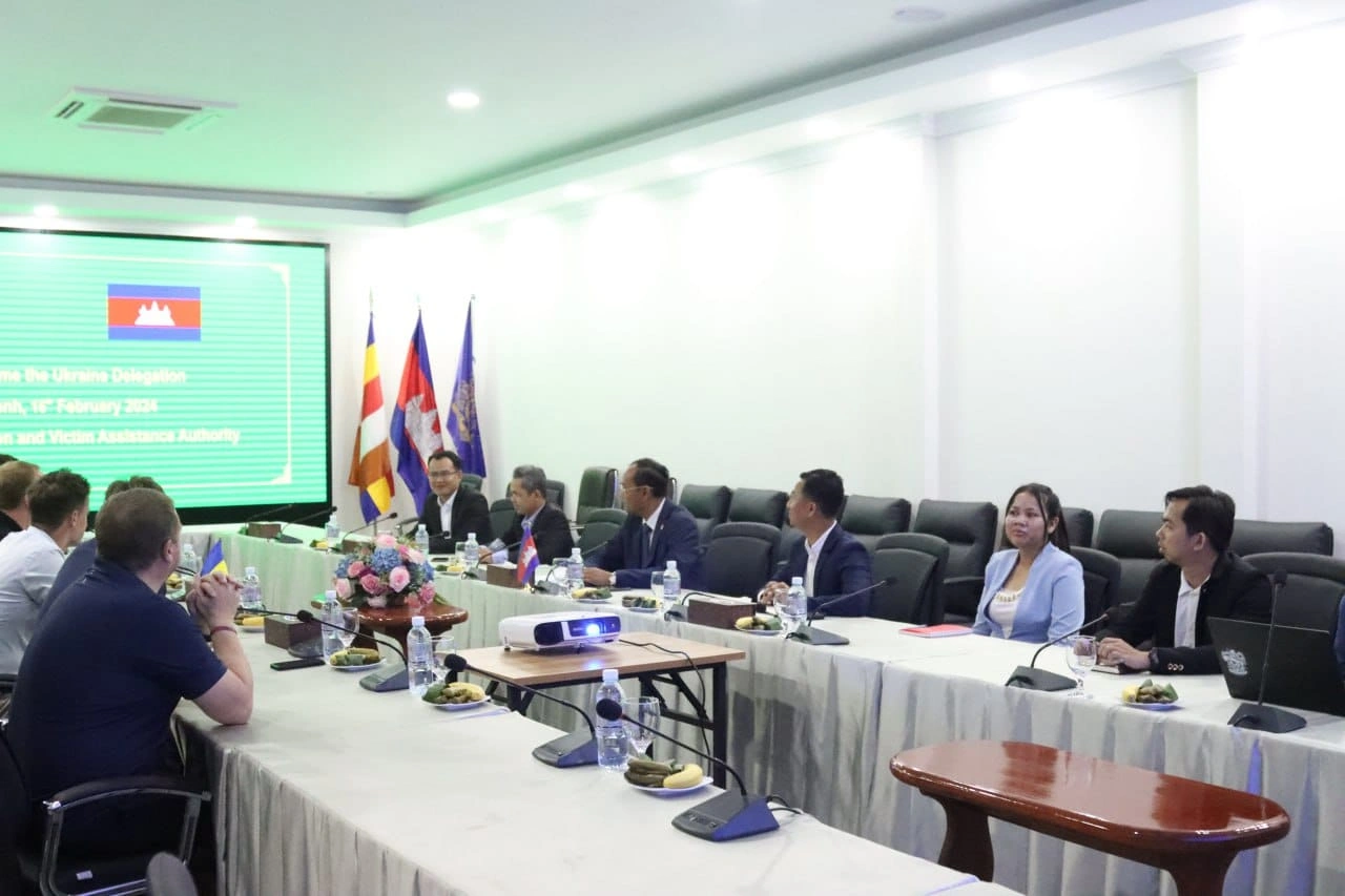 អាជ្ញាធរមីន៖ នៅព្រឹកថ្ងៃទី១៦ ខែកុម្ភៈ ឆ្នាំ២០២៤ ឯកឧត្ដម ព្រំ សុភមង្គល អនុប្រធាន អាជ្ញាធរមីន តំណាងថ្នាក់ដឹកនាំអាជ្ញាធរមីន បានទទួលជួបពិភាក្សាការងារជាមួយគណប្រតិភូប្រទេស អ៊ុយ ក្រែន ដើម្បីផ្តាស់ប្តូរបទពិសោធន៍ និងចំណេះដឹងលើវិស័យសកម្មភាពមីន។