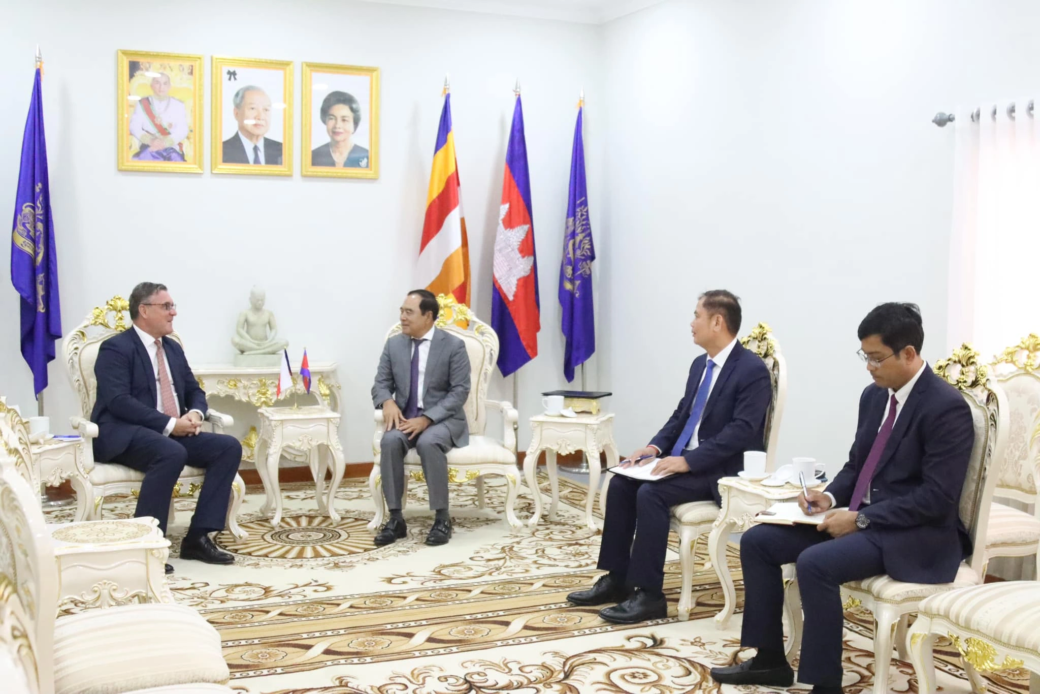ក្នុងជំនួបនោះ ភាគីទាំងពីរ បានធ្វើការពិភាក្សាគ្នាដោយឆ្លុះបញ្ចាំងពីទំនាក់ទំនងទ្វេភាគីដ៏ជិតស្និទ្ធ ទំនាក់ទំនងមិត្តភាព និងកិច្ចសហការរវាងប្រទេសទាំងពីរ។ ក្នុងឱកាសនោះ ឯកឧត្តម ទេសរដ្ឋមន្រ្តី លី ធុជ បានពាំនាំនូវសេចក្តីសាកសួរសុខទុក្ខពីសំណាក់ សម្តេចមហាបវរធិបតី ហ៊ុន ម៉ាណែត នាយករដ្ឋមន្រ្តី និងជាប្រធានអាជ្ញាធរមីន ជូនចំពោះ ឯកឧត្តម Martin Vavra ឯកអគ្គរដ្ឋទូតសាធារណរដ្ឋឆែកប្រចាំកម្ពុជា និងសហការី ដែលបំពេញបេសកកម្មដ៏មានតម្លៃ ដើម្បីជាផលប្រយោជន៍រួម ពង្រឹងចំណងមិត្តភាព និងកិច្ចសហប្រតិបត្តិការសម្រាប់ប្រជាជននៃប្រទេសទាំងពីរ។