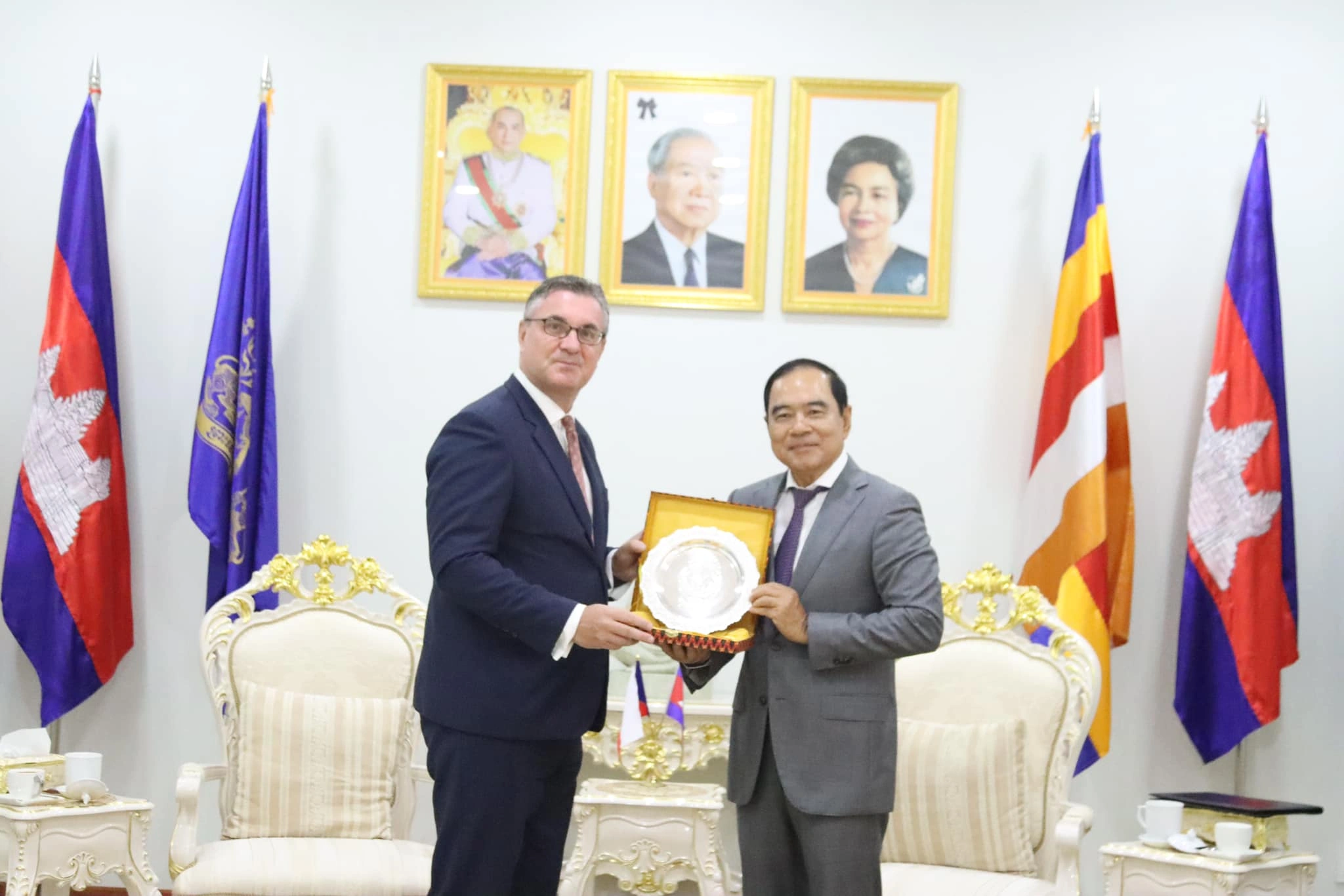 (ភ្នំពេញ) ថ្ងៃទី២៦ ខែកុម្ភៈ ឆ្នាំ២០២៤ នៅទីស្នាក់ការអាជ្ញាធរមីន តាងនាម សម្តេចមហាបវរធិបតី ហ៊ុន ម៉ាណែត នាយករដ្ឋមន្រ្តី និងជាប្រធានអាជ្ញាធរមីន ឯកឧត្តមបណ្ឌិត លី ធុជ ទេសរដ្ឋមន្រ្តី និងជាអនុប្រធានទី១ អាជ្ញាធរមីន បានអនុញ្ញាតឱ្យ ឯកឧត្តម Martin Vavra ឯកអគ្គរដ្ឋទូតសាធារណរដ្ឋឆែកប្រចាំកម្ពុជា ចូលជួបសម្តែងការគួរសម និងស្វែងយល់អំពីវិស័យសកម្មភាពមីននៅកម្ពុជា។
